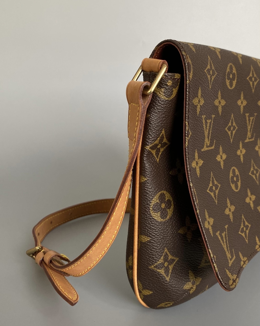 Bolsa Louis Vuitton Musette Tango, Canvas, marrom, ferragem ouro envelhecido, alça de ombro, compartimento único, com um bolso interno, fecho por botão magnético.